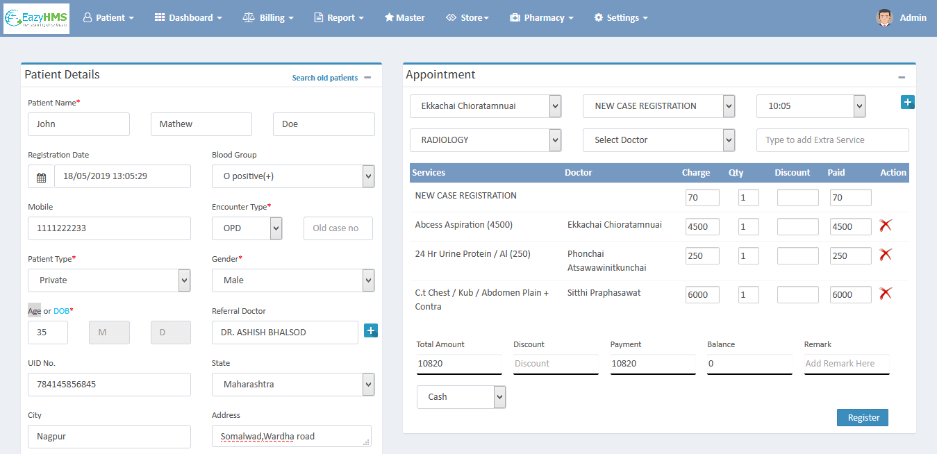 Provide Private and Corporate billing,Servicewise payment,discount and refund,Invoice and detailed invoice.
